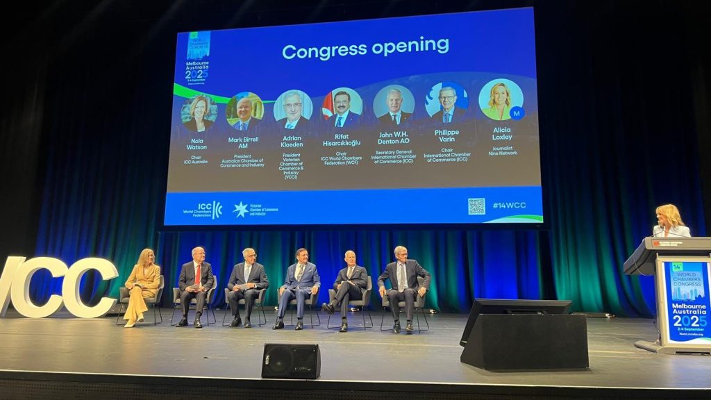 Dünya Odalar Kongresi’nin 14’üncüsü, 2 – 4 Eylül 2025 tarihleri arasında Melbourne-Avustralya’da başladı. Küresel ekonomiye yön veren kurumların buluştuğu etkinlikte, Aydın Sanayi Odası Yönetim Kurulu Başkanımız ve ICC Türkiye Yönetim Kurulu Üyesi Gökhan Maraş, Türkiye heyeti ile birlikte yer aldı.